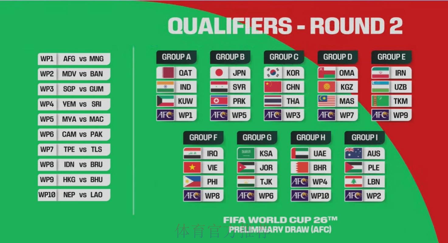2026世界杯预选赛亚洲区36强抽签 中国队分入C组